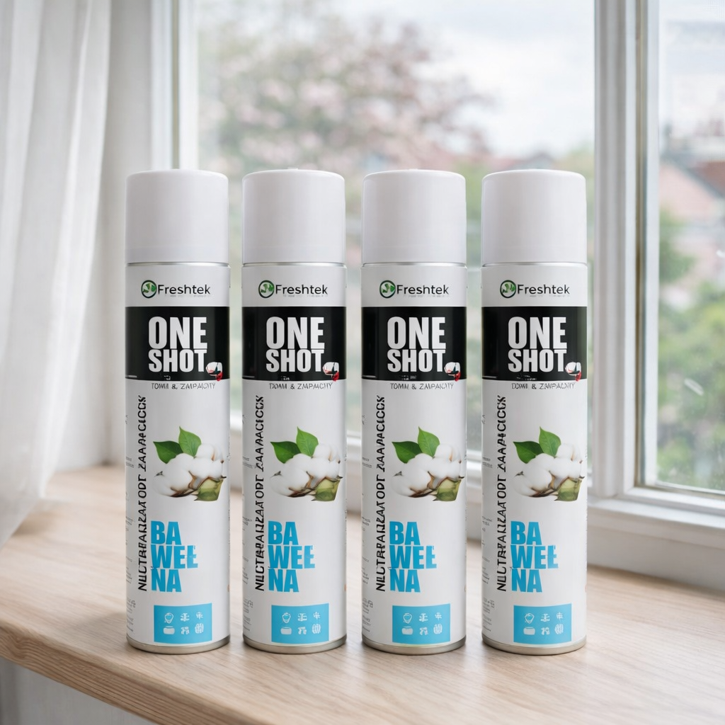Z przyjemnością przedstawiamy Ci One Shot, silnie skoncentrowany neutralizator zapachów o pojemności 600 ml i pięknym zapachu bawełny.